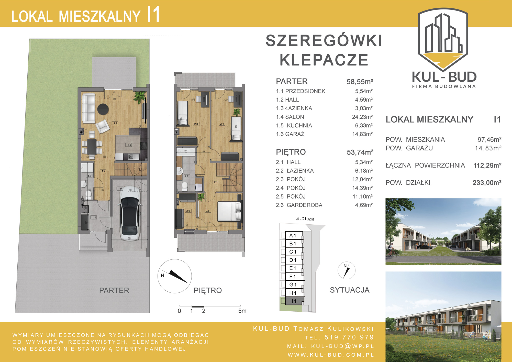 Inwestycja to zespół 18 domów szeregowych podzielonych na 2 etapy umiejscowiona w miejscowości Klepacze gm. Choroszcz (obok osiedla Starosielce) - róg ulic Wodociągowej i Długiej. Urocze, ciche miejsce tuż przy granicy miasta Białystok, 5 min. od przystanku komunikacji miejskiej, 5 min. od Szkoły Podstawowej nr 21, 10 min od V Liceum Ogólnokształcącego. Szeregówki w Klepaczach to świetna baza wypadowa na piesze lub rowerowe wycieczki po pięknych, gęsto zalesionych terenach!
